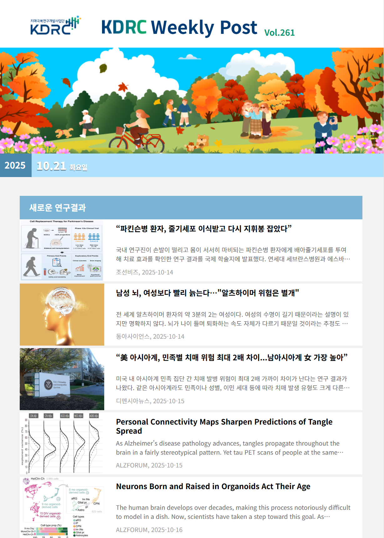 - 2025년 치매극복연구개발사업단 신규지원 연구개발과제 발표평가 대상과제 공지
