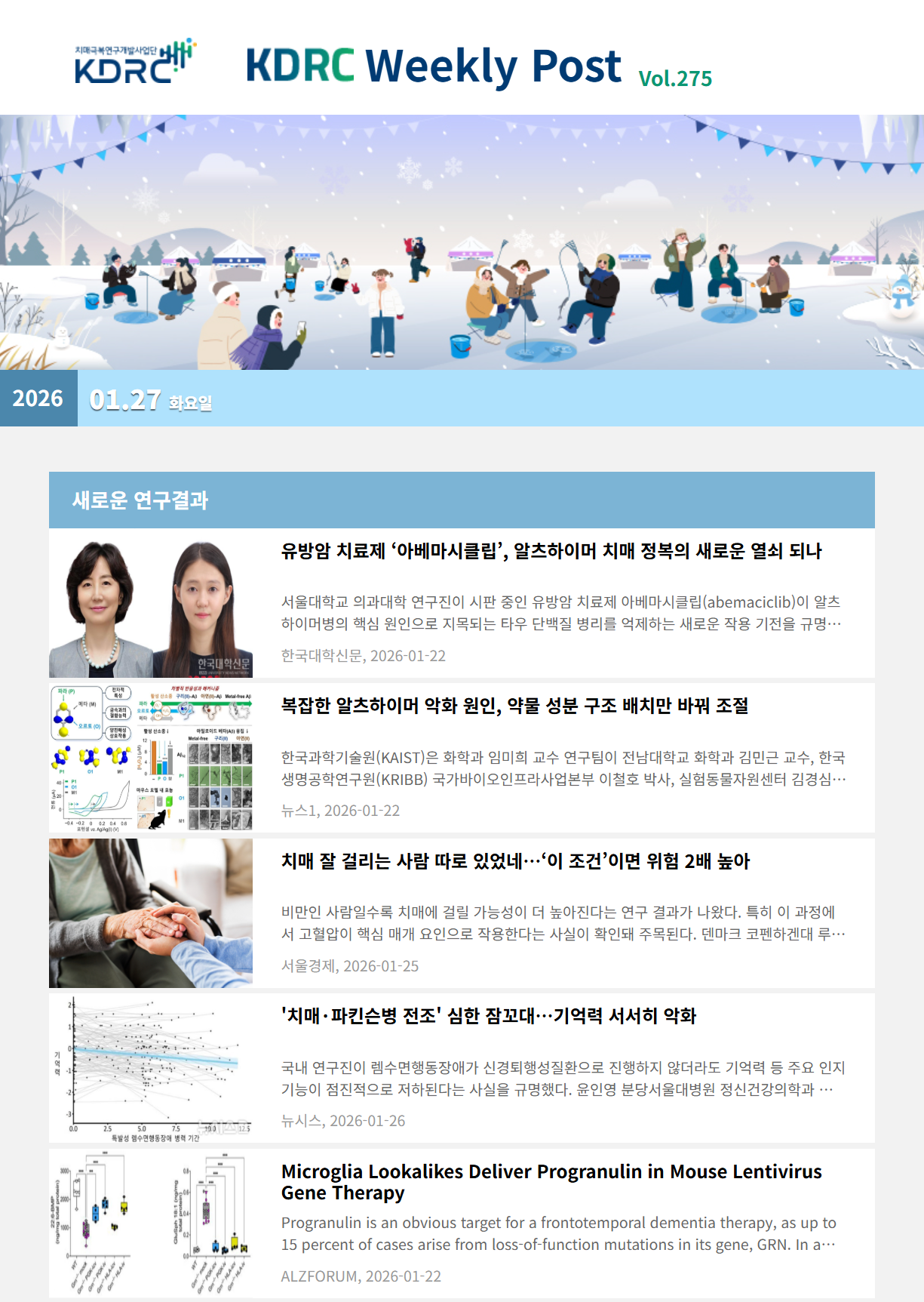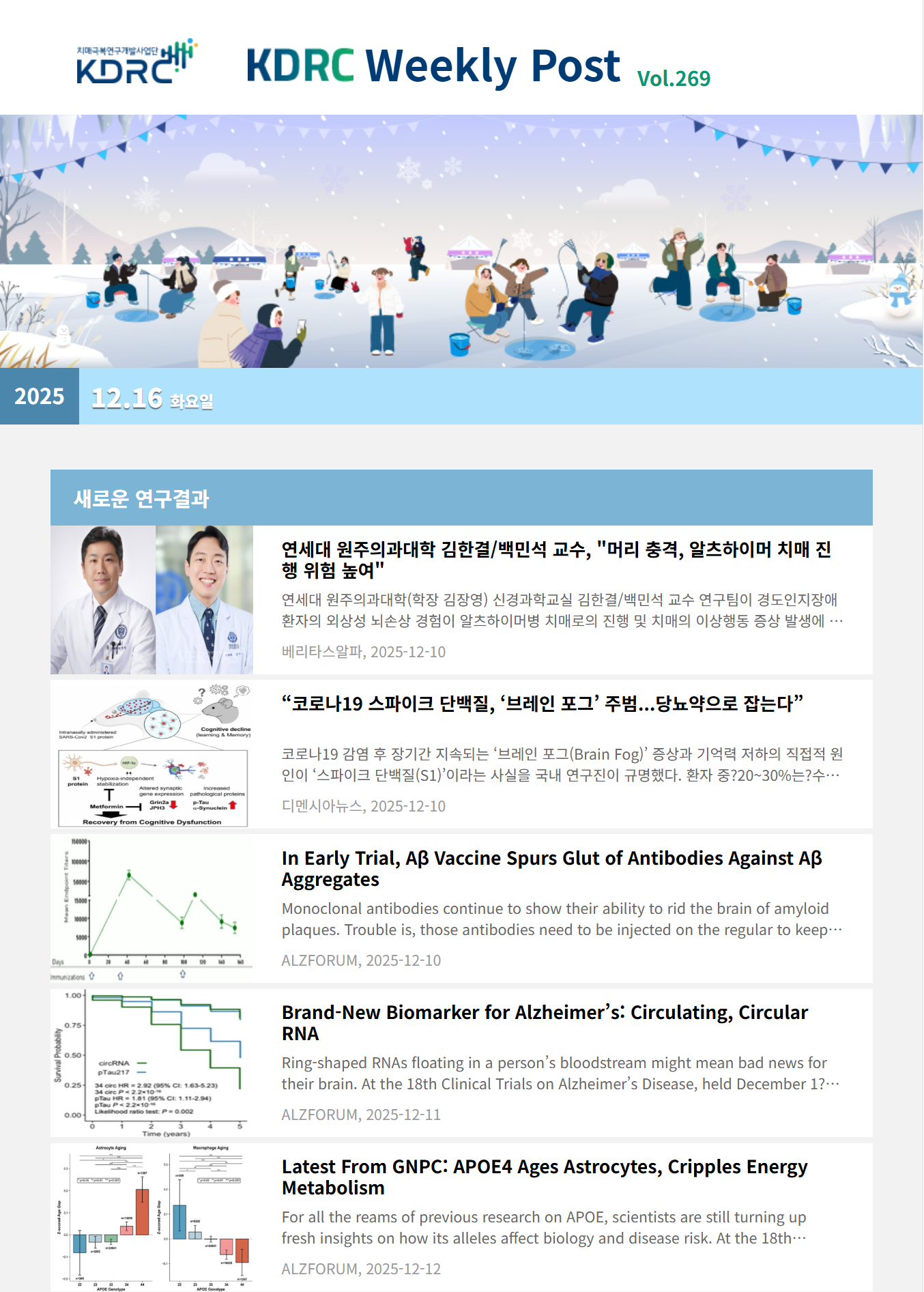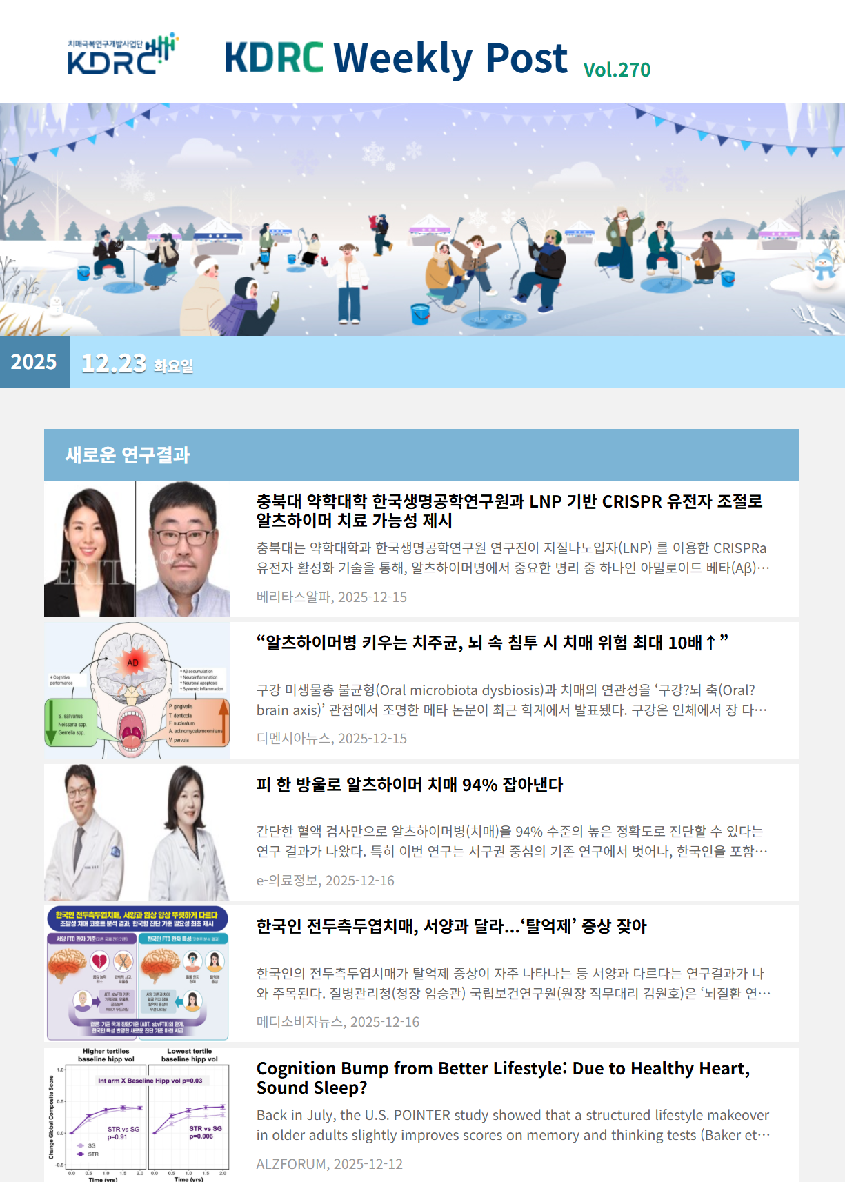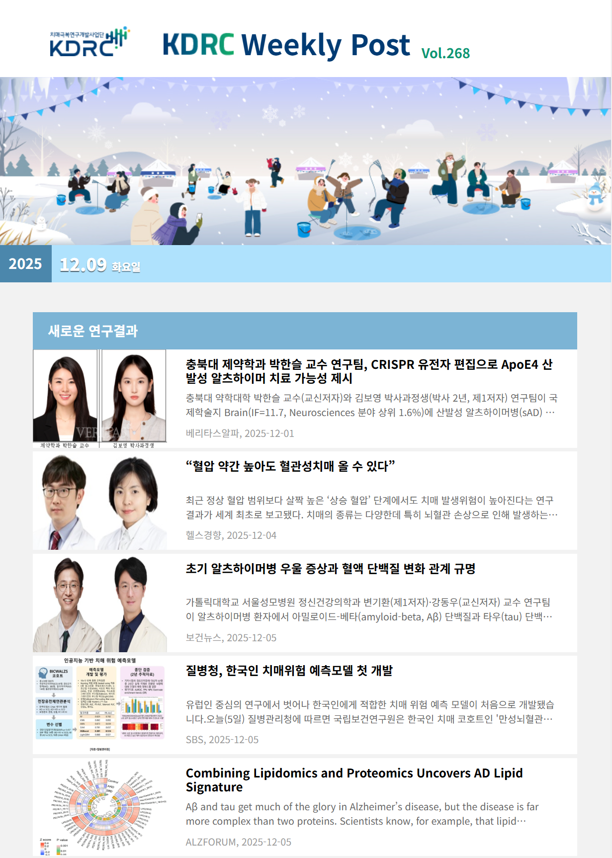 새로운 연구 결과, 과학기술 · 산업, 오피니언, 정책 · 학회 소식의 4개 영역으로 이루어져 있으며 치매극복연구개발사업단과 관련된 다양한 뉴스를 전달해 드립니다.