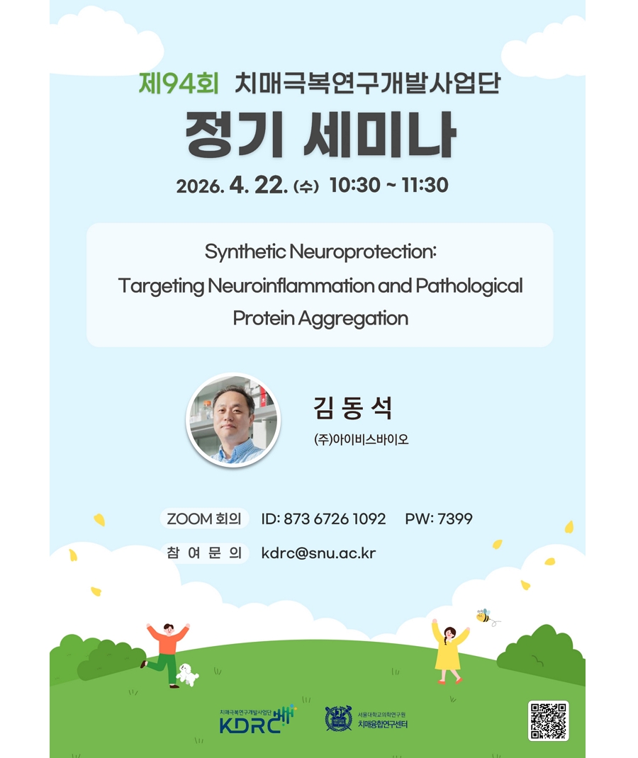 [세미나] 제93회 치매극복연구개발사업단 정기 세미나 2026-04-22